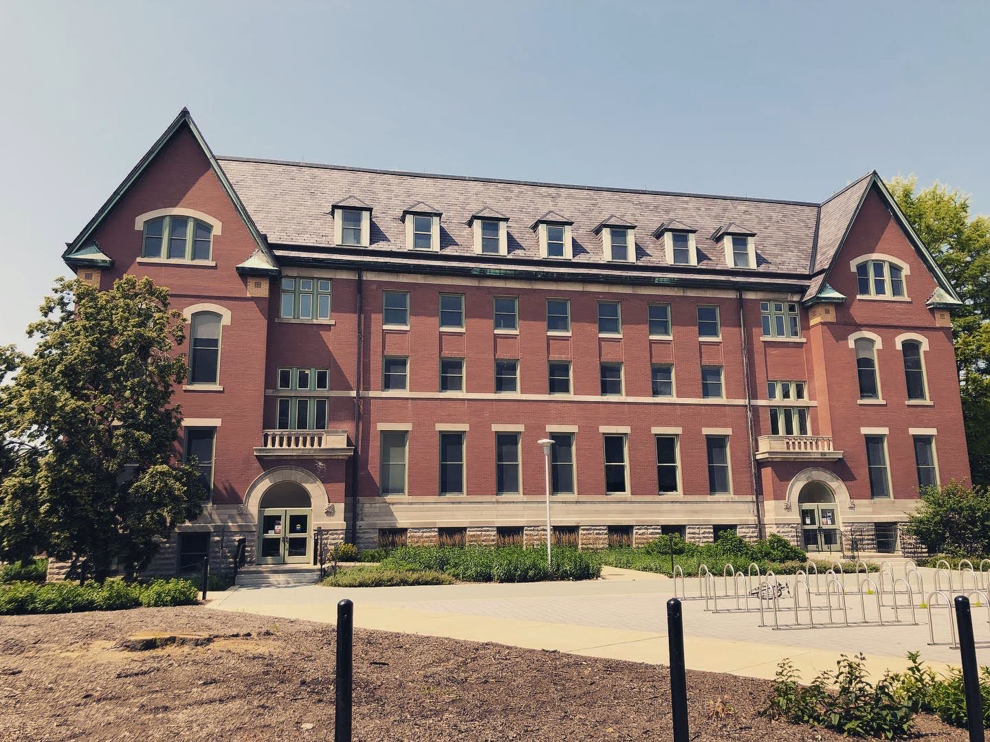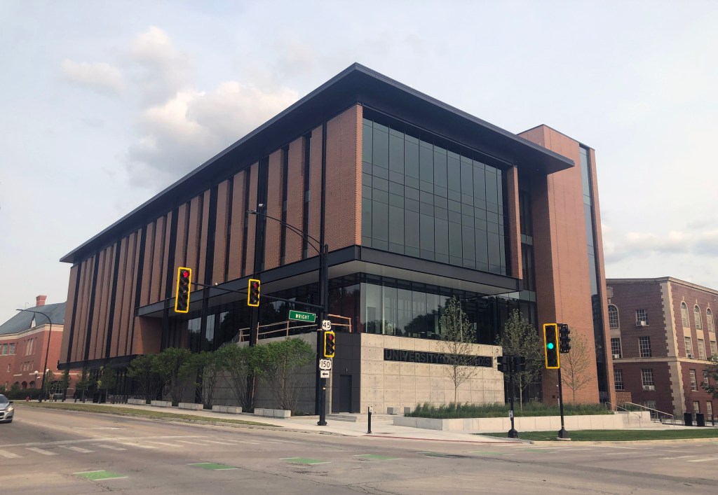 Later, Ben and I strolled the campus again. This time, we went to Illini Hall, a 1907 Jacobean Revival building that originally housed a YMCA, but which the university has now scheduled its demolition for a new high-rise data science center in a design that seemed to fit U. of I.’s current “campus modernization” program. It is hard to imagine how the new building, based on the concept designs I found on the university’s website, would fit on what is a small, tight site. Ben is doing Illini Hall’s HABS documentation. We both know the building well. It is hard to imagine it will be lost forever. Historic buildings are anchor points in our memory.