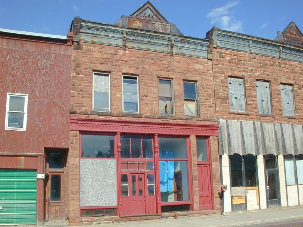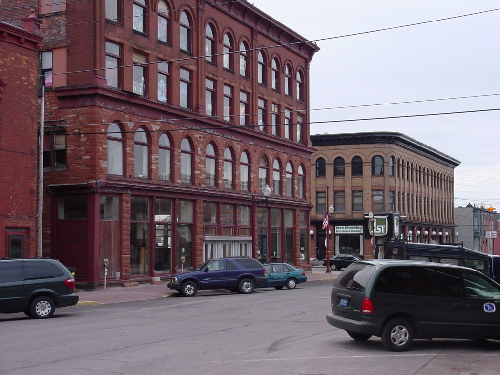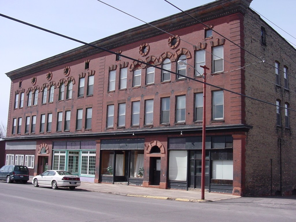 My work in Calumet did not focus on the Calumet and Hecla mining complex itself, which the Park Service nicely maintained and curated, but on the adjacent downtown district — a compelling place in its own right. The downtown comprised two parallel north-south streets lined with one to three story Main Street commercial buildings constructed in red sandstone and designed in variations of the Italianate, Romanesque and Queen Anne. My favorite buildings were the two-story Italianates and their elaborate metal cornices, and the wood clapboard gable-fronts with their intact three-part storefronts. Several of the gable-fronts were in excellent condition and still housed merchant uses after more than 100 years. Above all these, however, the Romanesque-styled Vertin Brothers Department Store building captured my attention the most. Its rectangular, four story form, and dead center location in the downtown district, gave it a commanding presence. At the time of my consultation work, the building was sitting empty. Recently, local artists converted the building to the Vertin Gallery, a collaborative for Keweenaw area artists with ground floor exhibition and selling spaces and artist studios in the upper floors.