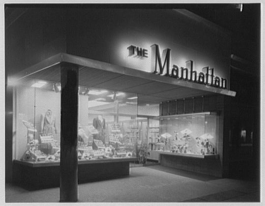 Top middle photo: Lapidus, Morris, Architect, Gottscho-Schleisner, Inc, photographer. The Manhattan, business in Cumberland, Maryland. Entrance exterior. United States Maryland Cumberland, 1950. Jan. 6. Photograph. https://www.loc.gov/item/2018723235/.