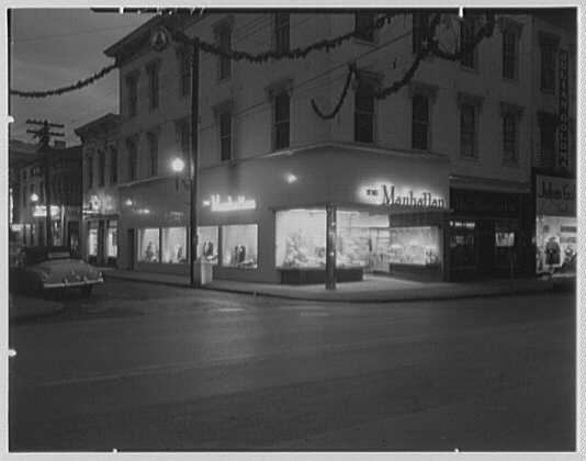 Top right photo: Lapidus, Morris, Architect, Gottscho-Schleisner, Inc, photographer. The Manhattan, business in Cumberland, Maryland. Exterior. United States Maryland Cumberland, 1950. Jan. 6. Photograph. https://www.loc.gov/item/2018723234/.
