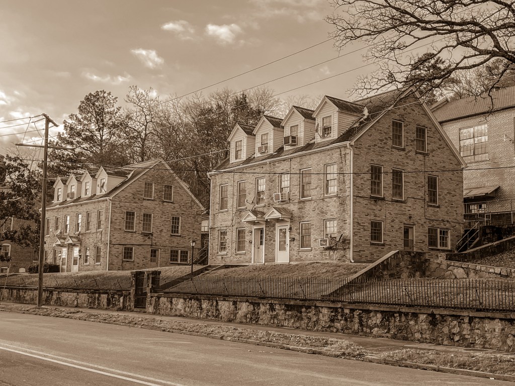 The first hospital building was designed in the High Victorian Gothic style, featuring a four-story wrap-around veranda. This design, I’m sure, was intended to provide patients with access to sunlight and fresh air, as well as a select view of the emerging Bathhouse Row and central business district below. Many of the hospital complex’s medical and ancillary buildings from this late Victorian period, up until the construction of the new hospital at the advent of the Great Depression, still remain. These include the wonderful officer apartments, built as duplexes that line the southern edge of the complex along Malvern Avenue. They remain vacant and uninhabited today.