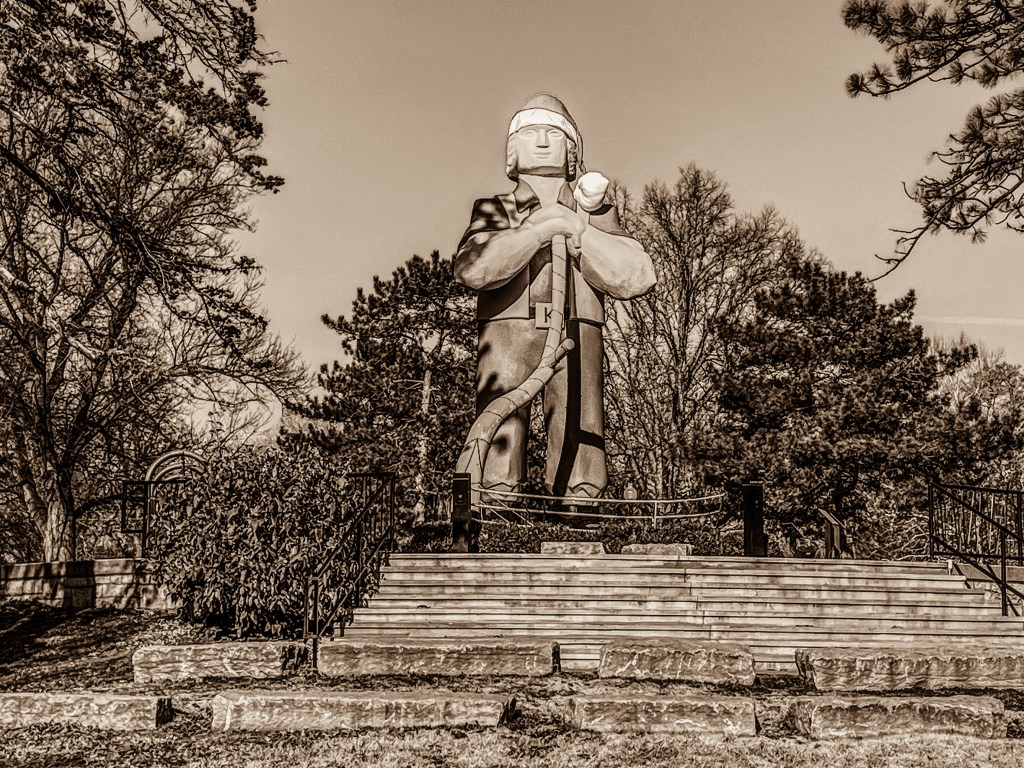 When I first visited last December, a week before Christmas, the city was serenely quiet with its students gone on holiday break. But the downtown was lit up and open for business, as one would expect for the holidays. Even Johnny Kaw, the 25-foot statue of the mythical but legendary pioneer figure who settled the Kansas landscape, sported a festive Christmas hat. The legend was drawn up by a KSU professor back in the 1950s. It would be an understatement if I said Johnny Kaw loomed large in Manhattan.